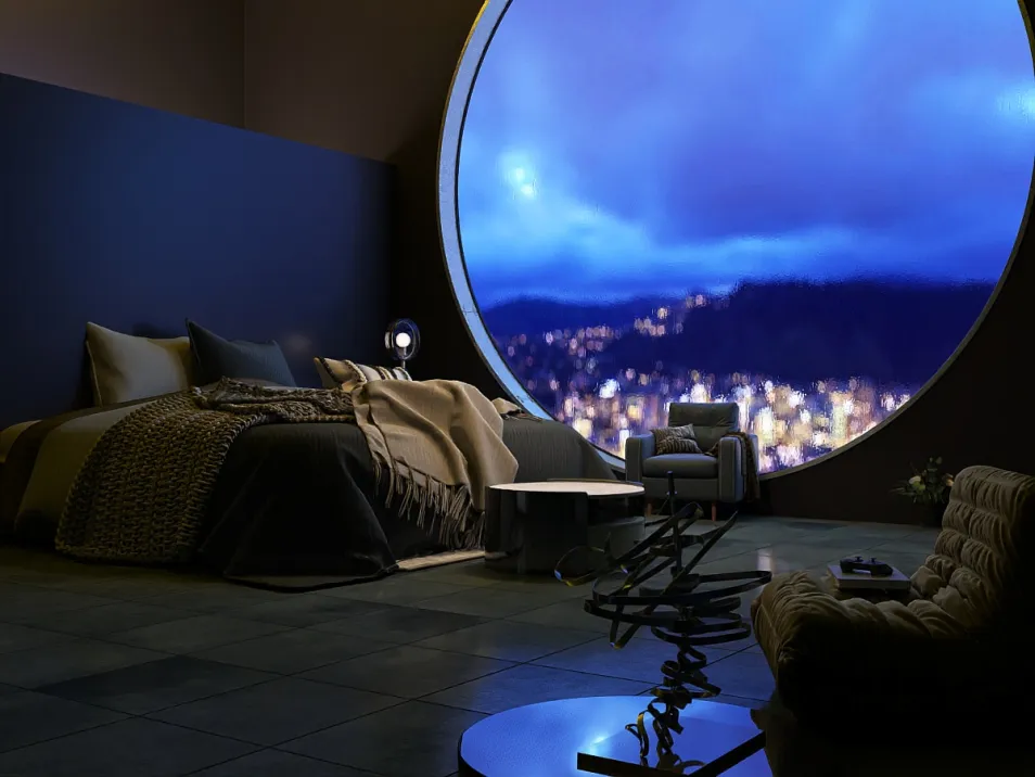A bold blend of deep black and royal blue — designed to reflect modern luxury. Set high above the city lights, this space brings together style, strength, and serenity. Would you live here? 🏙️🖤💙