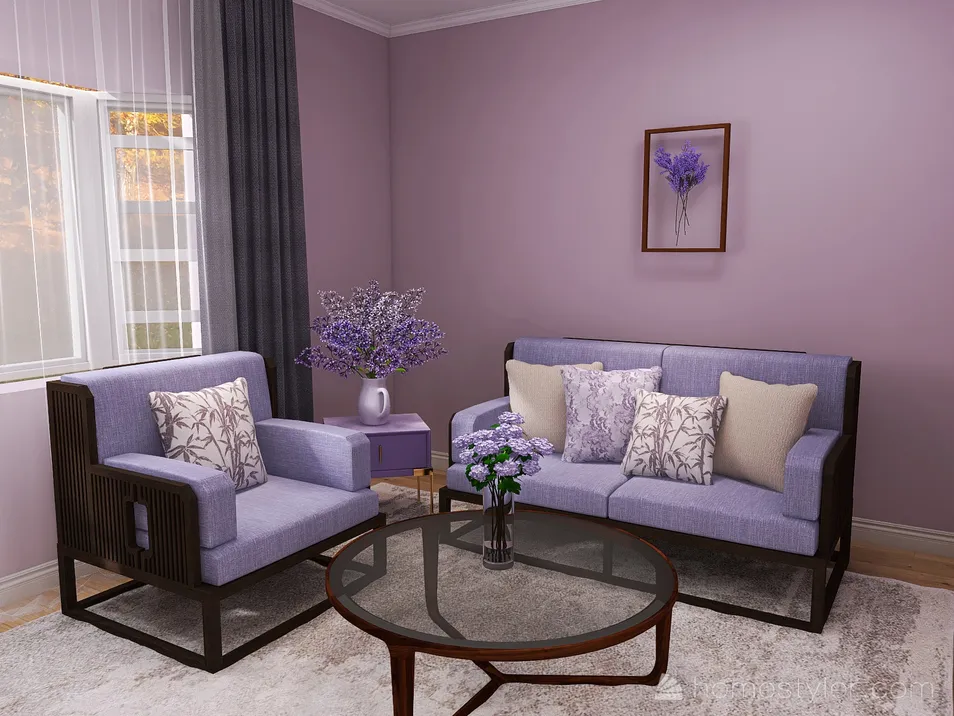 This design was made of purples, light pinks, and dark umber. I changed the shape of the given house to fit the way I wanted. I added some walls for a bedroom, and bathroom and added a few more walls and windows. I turned the 3 door patio given in the given design into a living room.