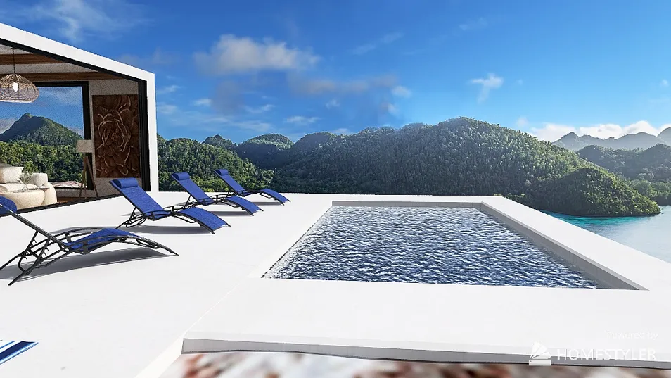 cette villa a été construite sur un rocher surplombant la mer , terrasse et piscine débordante elle est composé d' une pièce de vie , deux chambre et une salle de bain