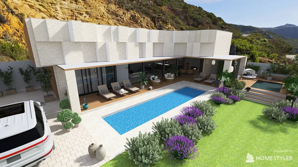 This is my contest work for "World architecture day" contest. It's modern house, located on the hill with stunning ocean view. Front levation has been inspired by awarded design of a house in Highland Park, Texas by Alterstudio Architecture.