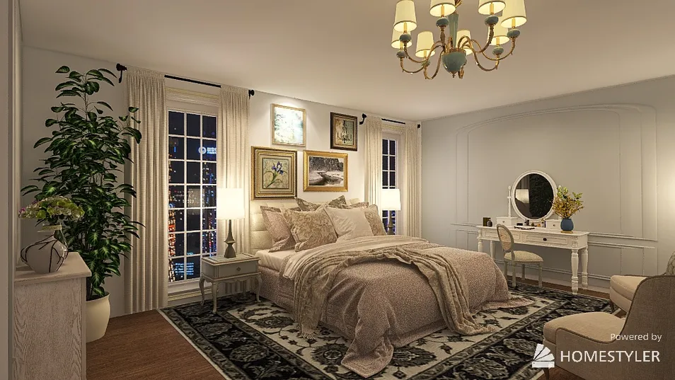 In a spacious family haven, vintage elegance intertwines with modern luxury. The soft glow of chandeliers bathes the room, while plush textures and rich colors invite warmth. A harmonious blend of nostalgia and contemporary design creates a sanctuary where memories blossom amidst timeless beauty.