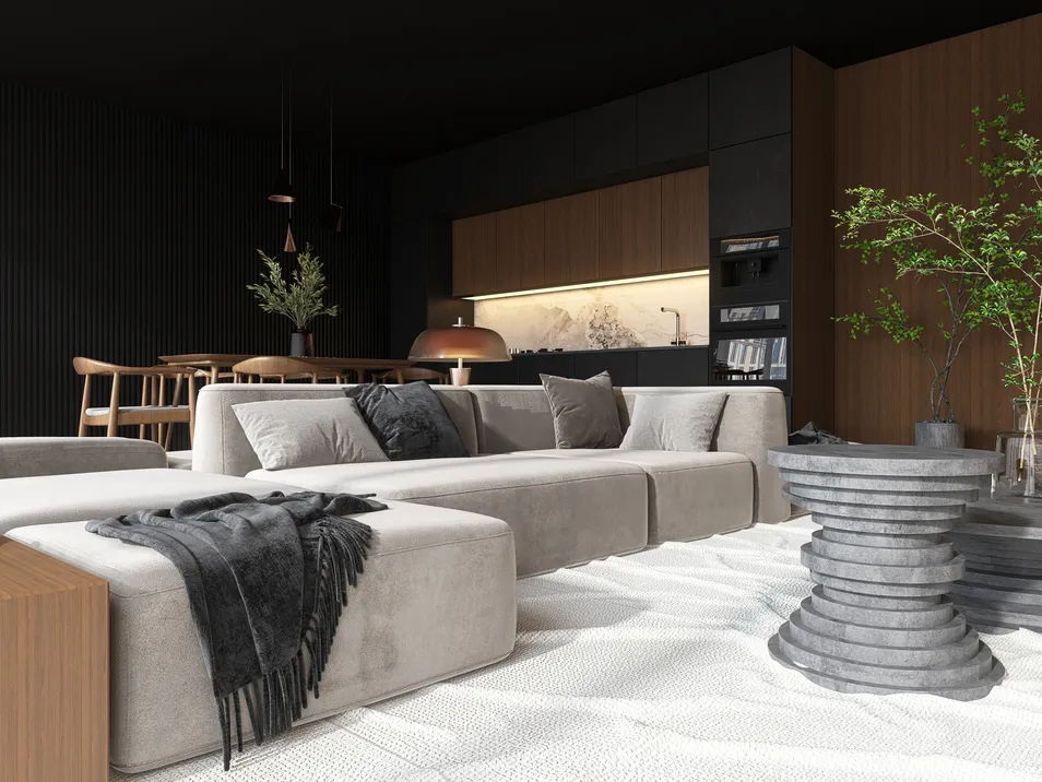 Welcome to Apartment W407, where modern elegance meets functionality in a symphony of dark walnut tones. This multi-functional living space is a testament to smart design, seamlessly blending comfort and style. From the sleek furniture to the ambient lighting, every element is curated to enhance both aesthetics and utility. Whether it's hosting gatherings under the warm glow or unwinding in the plush corners, Apartment W407 is a chic sanctuary that transforms living into art. Welcome home to sophistication redefined.