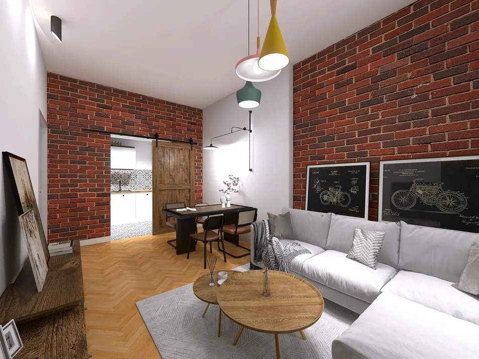 This is an apartment that was given a second life. It was in use for 30 years - kids get old, and parents moved out for a beautiful cottage house under the city. Now it is after total renovation. It is great for a couple, where the kitchen has been moved to the living room and extra space is now a home office room. Great project, great people - now is the time to enjoy life.