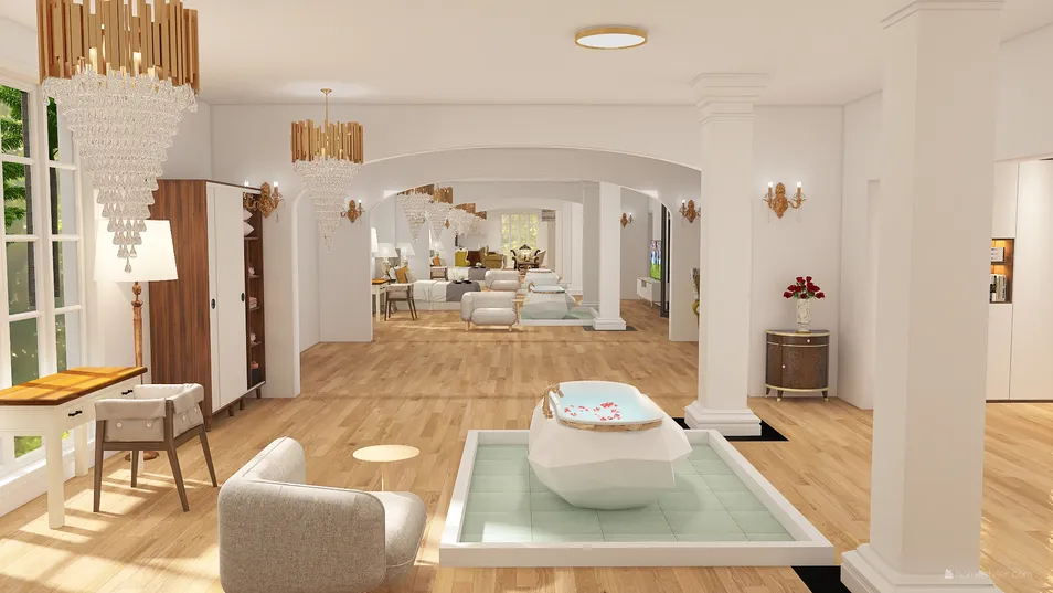 水樣森林為一以環湖設計為出發點的villa式豪宅,設計上就如同把家做成costco,所有的空間,與如中國風的水岸樓格,結合西式風格的東西合併,使得住與環境已無分別的區線,而在一樓仍設有臥房,為開放式自由的風格,可以穿透任何平面,達到如大氣的風格,並設有如溫泉泡湯的露天浴池,1樓如如同包下一健身房,並有餐酒館,可擴充額外傢俱,拱型牆柱不只好看,更能提供建築強度,一部份的拱牆還能放電冰箱,2樓為私密臥房空間與大型餐廳,不只能夠在2樓欣賞鋼琴演出,並可以由天橋通往1樓挑高大廳,"右方視野", 右方視野為設計重點,當一進車庫(右下角),往左邊通往大廳可看到巨大無比的電視,與沙發,樓梯往上通往2樓,右轉及所為"右方視野".寬擴的湖景映在眼廉,通往2樓的天橋仍有沙發,能看到湖面,設計可調整,格局為方型,2樓左右邊都可以看到湖面,設計理念為低調但實用的大空間,高達2000坪設計,機能性又帶工業風設計,講求極簡的風格,沒有天花板過多的設計,壩氣的一體式穿透空間,不只營造壯闊空間,並能在有效成本下,達到機能與空間,不鑽牛角間於細微的設計,粗曠中帶有風格,傢俱可以自由調整成不同版本風格