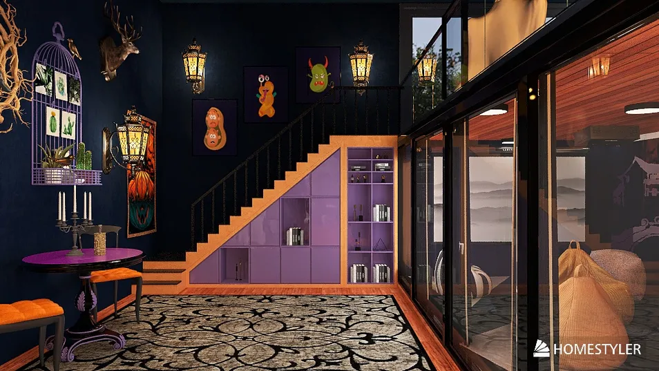 When the lights dim and the curtains fall, this room comes alive — not with fear, but with whispers of stories, laughter, and the comfort of togetherness. In the glow of amber lamps and shadows that dance across navy walls, every color — purple, orange, and gold — tells a story of warmth hidden in the dark. Tonight, the theater becomes a little world of its own. A place where Halloween is not about ghosts, but about the beautiful spell of family, and the magic of sharing the same light in the quiet of night. 🎃🕸️🍂