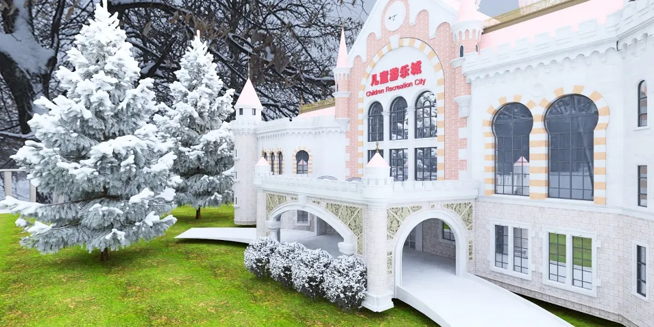 In a realm where snow caresses the intricate architecture, each flake whispers stories of fleeting warmth. The castle, with its pastel hues, stands like a dream, juxtaposed against the stark winter. Nature, adorned in white, mirrors the elegance of design, while the chill in the air invites a moment of reflection.