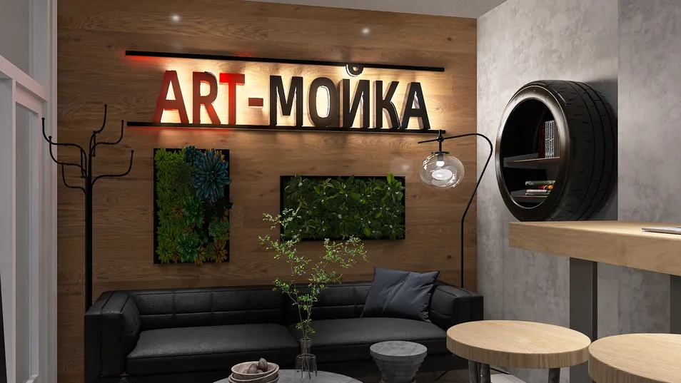 Проект автомойки. Задача была малыми силами преобразить действующую мойку в лучшую сторону. Заказчик просил использовать кварц винил на стенах ,а так же продумать гидроизоляцию т.к помещения топит