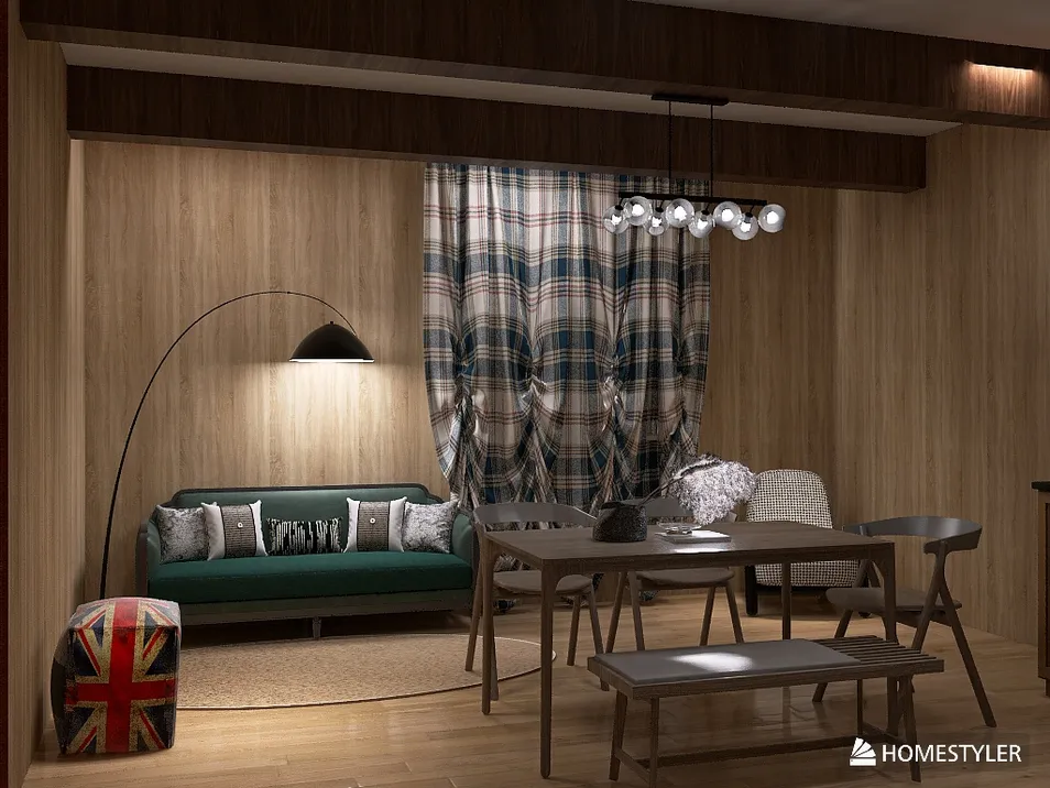 уютная гостиная в деревенском стиле сочетание текстиля в цвете ,мягкий, почти тусклый свет для отдыха и расслабления. Деревянная мебель простой конструкции .