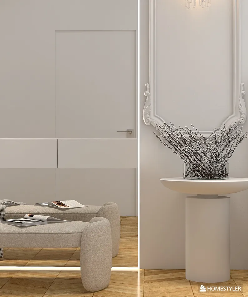 В этом пространстве неоклассики царит элегантность. Мягкие линии, изысканные детали и гармония оттенков создают атмосферу уюта. Каждый элемент, от светильников до текстиля, рассказывает о любви к классике, подчеркивая изящество и современность.