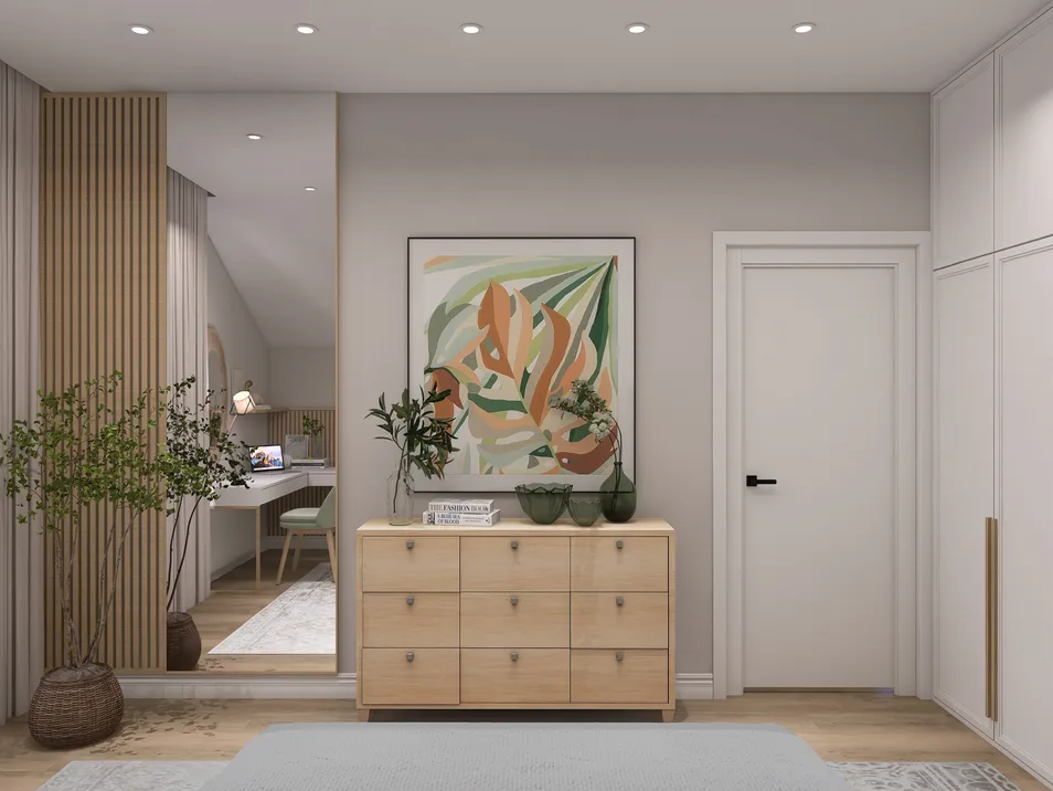 В этой комнате, где тишина сливается с мелодией джаза, одинокая кошка дремлет на подоконнике. Зеркало отражает пустоту, словно незавершенный роман, а свет мягко касается стен, подчеркивая уют, который не спешит приходить.