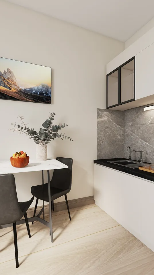 В этом пространстве с легкостью соединяются стиль и функциональность. Стены нежно обнимают мягкие линии мебели, а светлые тона наполняют атмосферу теплом. Здесь каждый уголок приглашает к уютным беседам, создавая идеальное место для отдыха и вдохновения.