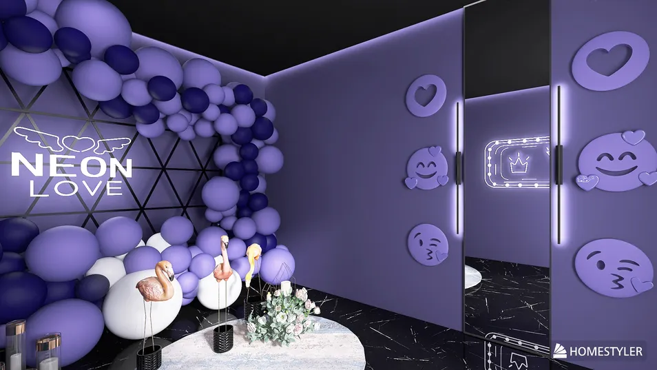 Эта фотозона, окутанная пурпурными шарами и неоновыми огнями, словно приглашает вас в мир мечты. Каждый элемент, от изысканных фламинго до блестящих деталей, создает атмосферу легкости, где каждый кадр становится произведением искусства.