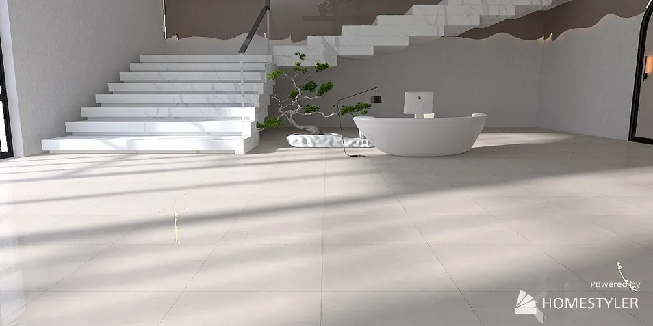 تتراقص أشعة الشمس على الأرضية اللامعة، حيث تلتقي خطوط الدرج الرخامية مع لمسات الطبيعة. في كل زاوية، تنبض الحياة من خلال نباتات خضراء، كأنها تحكي قصة المكان، بينما يظل المكتب الأبيض في انتظار الأفكار الجديدة.