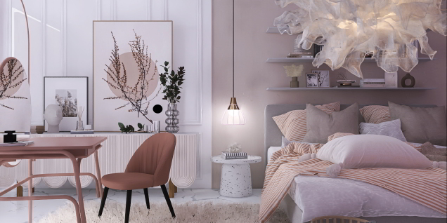 Flamingos, a beautiful bird, have pink feathers that are rarely seen in nature. Did you know that the color of flamingos' feathers comes from the algae and brine shrimp in their food? In this challenge, let's bring the color of flamingos into your design inspiration, use the colors coral, pink, gray or white, and design a beautiful flamingo-colored room!