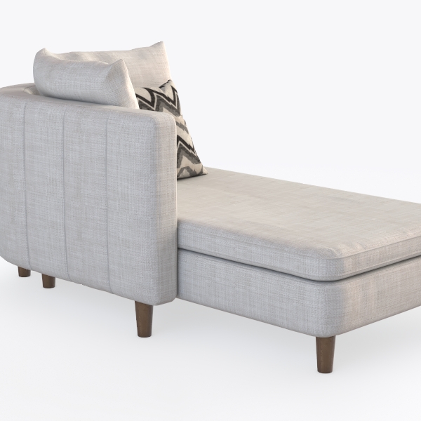 Introducing a stylish and contemporary chaise lounge that embodies modern elegance. Its design inspiration stems from minimalist aesthetics, featuring clean lines and a serene color palette. The fabric exudes a soft texture, inviting you to sink in and relax, while the sturdy wooden legs provide a warm contrast that enhances its overall appeal.