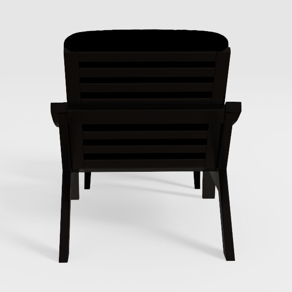 Crafted with a rich, dark wood finish, the surface exhibits a smooth, velvety texture—cool to the touch yet warm in presence—while the vertical slats of the backrest and armrests cast delicate shadows, enhancing its sculptural presence. The tapering legs, angled slightly outward, add stability and a sense of lightness, making it feel less bulky despite its solid build.
