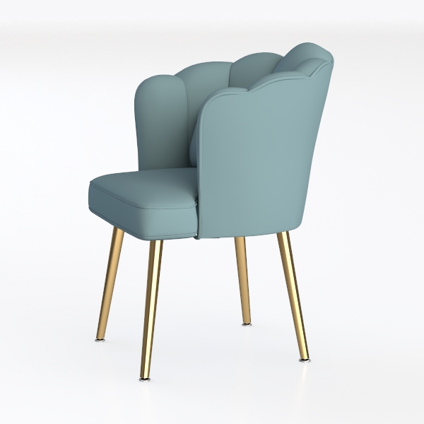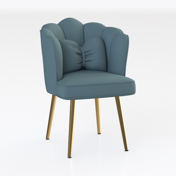 Inspired by the organic elegance of natural blooms, this chair merges contemporary design with a hint of romantic softness, its silhouette mimicking the gentle unfurling of a peony petal. The upholstery, rendered in a muted baby blue tone with a smooth, velvety texture, feels luxuriously plush to the touch—each fold in the backrest, gathered into a subtle, cloud-like shape, enhances the sense of comfort and coziness, while the high-resilience foam padding ensures a supportive seat that invites lingering.
