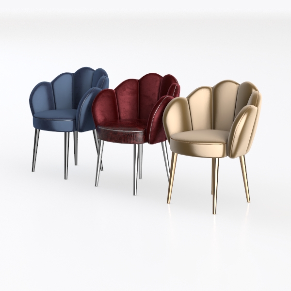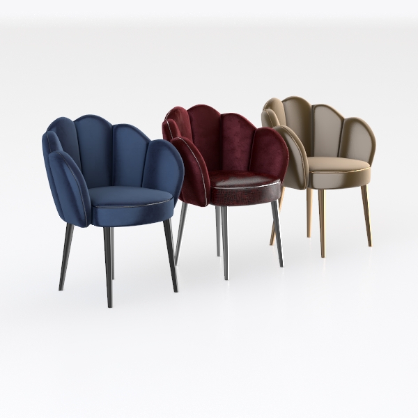 This collection of seating pieces draws inspiration from the delicate unfolding of flowers, capturing the softness and dynamism of nature in a contemporary form. The design emphasizes organic curves, with each chair featuring a petal-like backrest and armrests that gently cradle the body, evoking a sense of warmth and comfort.