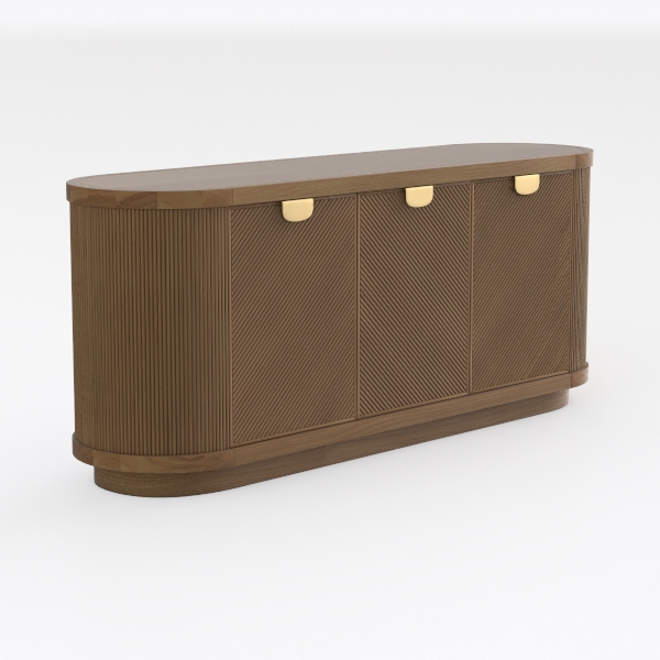 This elegant sideboard embodies a harmonious blend of organic softness and modern minimalism, crafted to elevate any living space with both visual appeal and practicality. Its design draws inspiration from natural fluidity, with gently rounded edges that evoke the smooth contours of coastal landscapes, while the geometric herringbone pattern carved into the front panels adds subtle texture and depth, nodding to traditional craftsmanship reimagined for contemporary tastes.