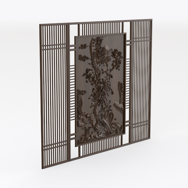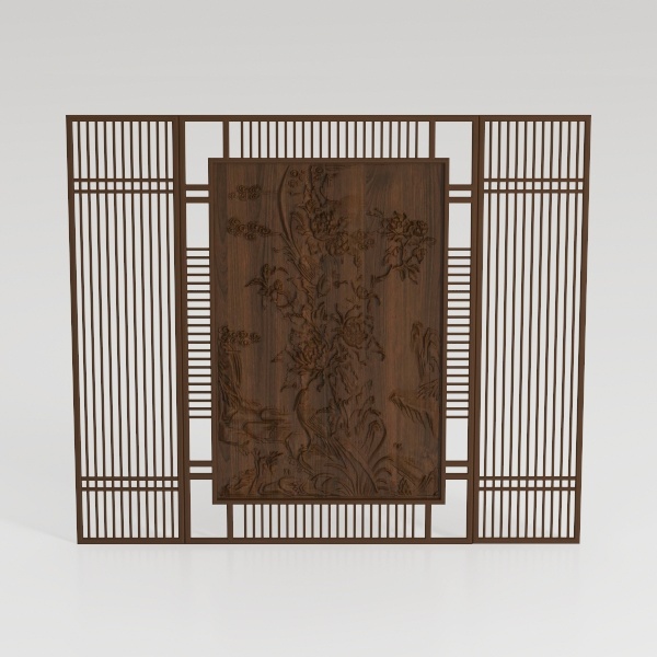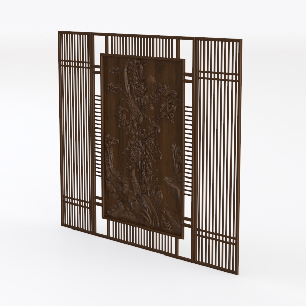 This elegant wooden screen draws inspiration from the delicate artistry of classical East Asian furniture, where nature motifs and meticulous craftsmanship converge to create a piece that transcends mere function. The warm, rich brown hue of the wood, with its smooth surface and subtle grain, creates a sense of timeless elegance. Intricate floral and avian carvings adorn the center panel, their raised details adding depth and texture to the piece, inviting gentle touches that reveal the artistry of handcrafting. The vertical slats on either side, with their clean, rhythmic lines, frame the central carving beautifully, balancing the ornate details with a sense of simplicity and structure.
