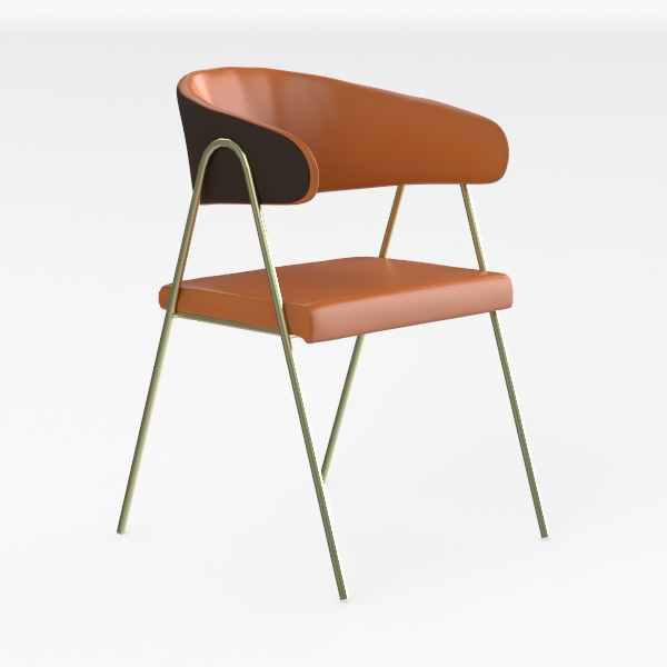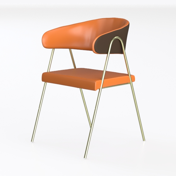 Crafted with a harmony of organic softness and clean lines, this chair takes cues from mid-century modern design principles, merging nostalgic warmth with contemporary minimalism. Its vibrant tangerine upholstery—stretchy yet structured—boasts a buttery-smooth texture that feels cool to the touch, inviting gentle contact, while the matte finish diffuses light softly, avoiding harsh glare. The gently curved backrest and armrests follow the natural flow of the body, creating a sense of effortless support, while the slender, brushed brass legs add a subtle metallic sheen, balancing the piece’s approachable charm with a touch of understated luxury.
