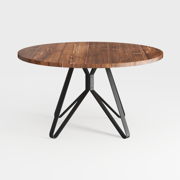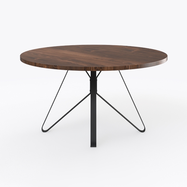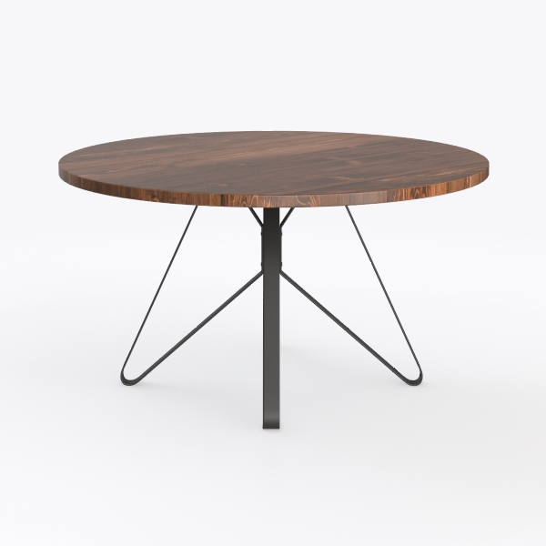 This elegant table merges the organic charm of natural wood with the clean lines of modern design, drawing inspiration from the balance of rustic warmth and contemporary minimalism. The tabletop, crafted from solid wood, features a rich, warm brown hue with distinct, irregular grain patterns that tell a story of natural formation. Its surface is smooth yet subtly textured, inviting gentle touches and evoking a sense of earthy authenticity. The curved, oval shape softens the space, while the black metal base—with its angular, X-shaped frame—adds a striking contrast, balancing the wood’s organic warmth with a touch of edgy modernity. This contrast between the wood’s tactile depth and the metal’s crisp lines creates a visually engaging dynamic.