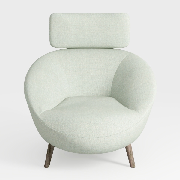 This lounge chair merges organic softness with modern simplicity, taking cues from nature’s flowing forms—like smooth river stones or gently curved pods. Its light, textured sage-green fabric wraps around a plump, deep seat, inviting you to sink in with a plush, warm touch; the subtle weave adds depth without overwhelming, keeping the look serene and approachable. The silhouette is defined by rounded, unbroken edges, eliminating sharp angles to create a light, airy presence—like a gentle curve frozen in time, making it feel both substantial and weightless.
