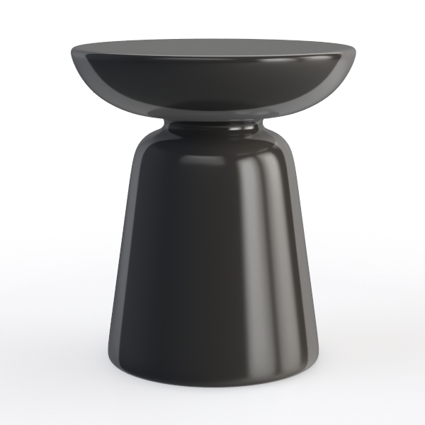 The piece features a striking, monochromatic silhouette with a balanced, sculptural form—its base tapering gently upward to a wide, rounded top, merging geometric precision with organic softness. Drawing inspiration from the fluid lines of natural elements like polished river stones and the clean minimalism of modern design, it embodies both artistic elegance and practical function. The surface, finished in a smooth, matte-black hue, catches light subtly, reflecting a deep, velvety luster that feels cool yet inviting to the touch. Its compact size makes it versatile, ideal for anchoring a corner of a minimalist living room, beside a plush sofa in a contemporary lounge, or as a functional accent in a cozy bedroom. The stable, tapering base ensures wobble-free support, while the rounded top offers a focused, small surface perfect for holding a coffee mug, a potted succulent, or a stack of design books. Whether styled with metallic lamp bases, textured throws, or bold art, this piece adds understated charm and functional versatility to any space.