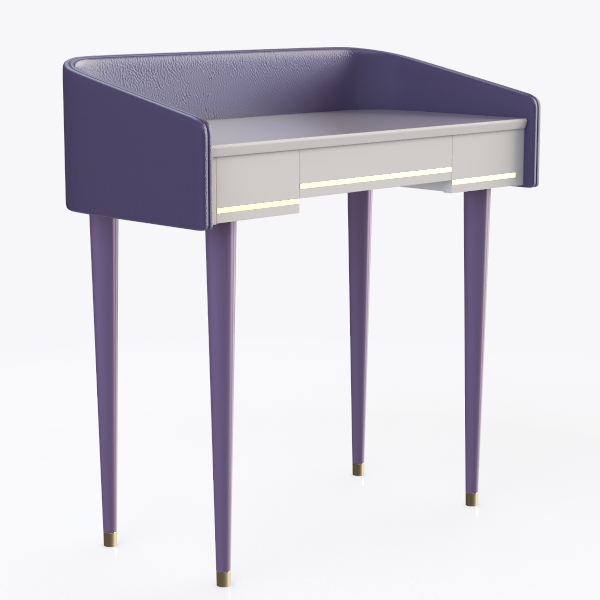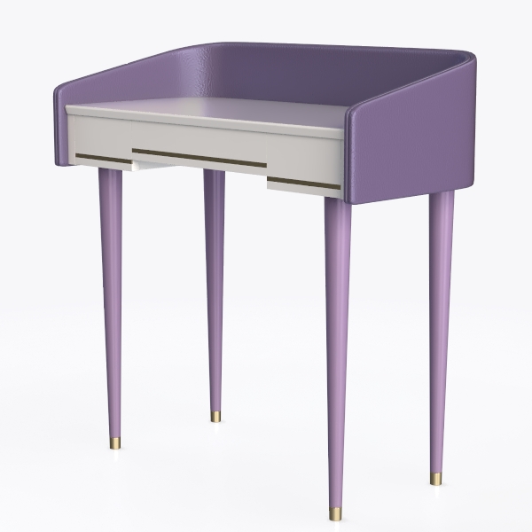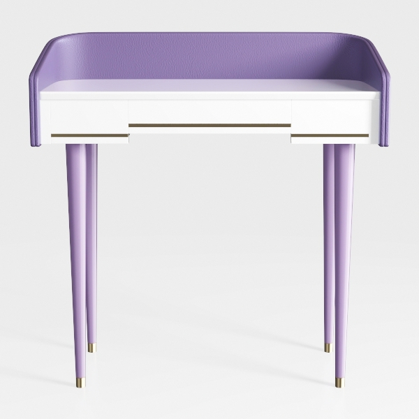 Founded on a blend of Art Deco's geometric subtleties and soft, contemporary color narratives, this piece draws inspiration from the harmonious fusion of vintage craftsmanship and modern minimalism. The curved, lavender-hued backrest, echoing the gentle curves of mid-century upholstery, infuses the design with a nostalgic warmth, while the crisp white tabletop offers a clean, uncluttered expanse.