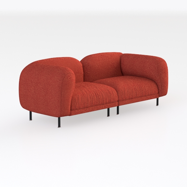 Introducing a stunning sofa that draws inspiration from modern minimalist design, this piece combines comfort and style seamlessly. Its inviting, plush fabric boasts a rich, burnt orange hue, adding a warm and vibrant touch to any room. The smooth contours and rounded edges create a cozy feel, making it the perfect spot to unwind after a long day.