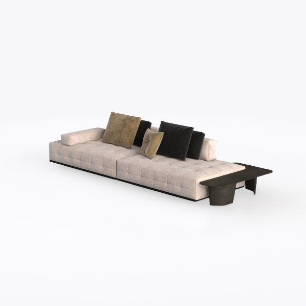 This elegantly designed sofa embodies a sophisticated blend of modern aesthetics and comfort. Inspired by minimalist architecture, its clean lines and harmonious color palette evoke a sense of tranquility. The plush upholstery invites touch, with a velvety smooth texture that enhances its inviting allure. The contrast between the creamy base and the deep black accents brings a striking visual appeal, making it an eye-catching centerpiece in any living space.