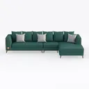 Introducing a stunning sectional sofa that embodies modern elegance with its rich teal upholstery. The design is inspired by luxurious contemporary aesthetics, offering both style and comfort. The soft, tactile fabric invites you to sink in, while the plush cushions provide the perfect balance of support and relaxation.