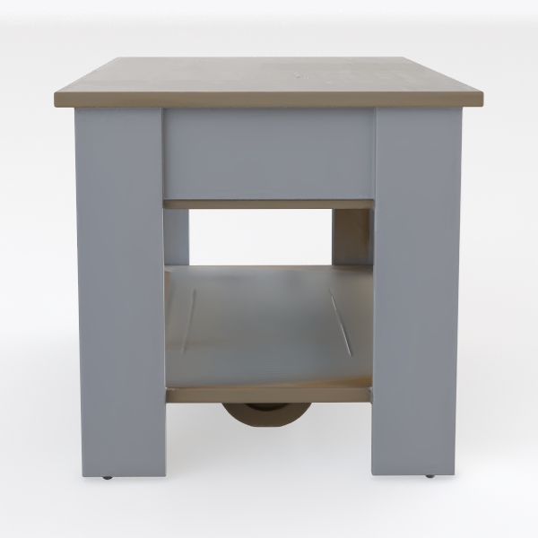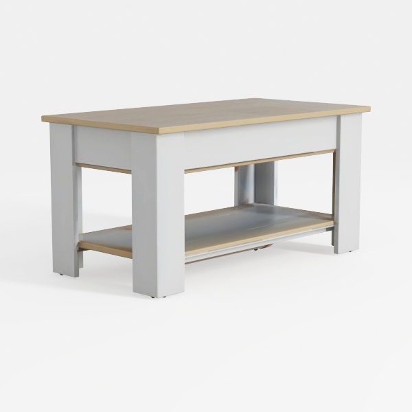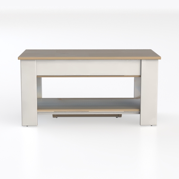 Austin Storage Table, One Extendable Table Shelf, Four Legs, Lower Shelf -Light Oak / White