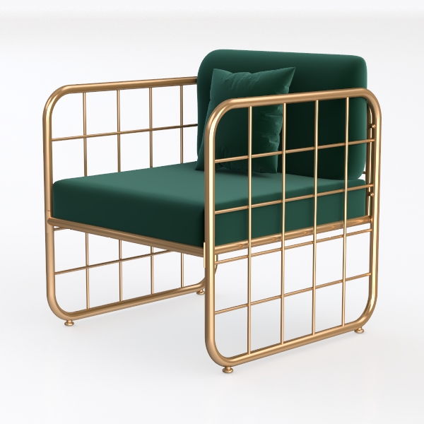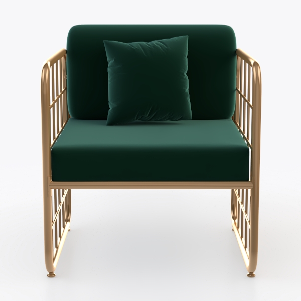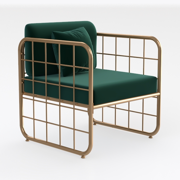 Inspired by contemporary minimalism, this chair seamlessly blends functionality with a touch of elegance. The striking green upholstery delivers a bold aesthetic, while the plush cushion invites relaxation, making it a perfect spot to unwind. Its smooth, golden metal frame not only enhances durability but also adds a luxurious sheen that’s visually captivating.