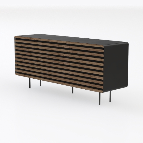 Functionality is key: the three-section design features a wide top ideal for displaying decorative objects, while deep, divided compartments inside offer ample storage for media devices, cookbooks, or daily essentials. The slatted front allows for gentle air circulation, and smooth-closing drawers ensure quiet, seamless use. Overall, it’s a versatile, timeless addition that merges practical storage with understated elegance, making it a focal point in any space.