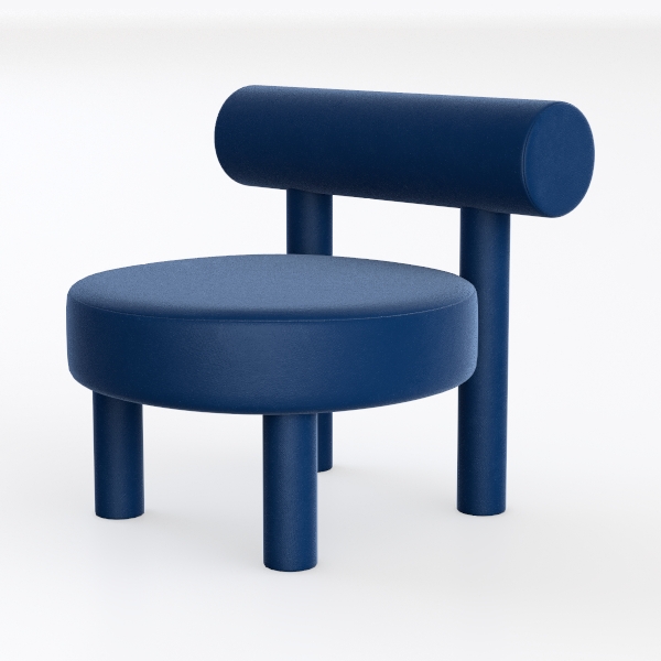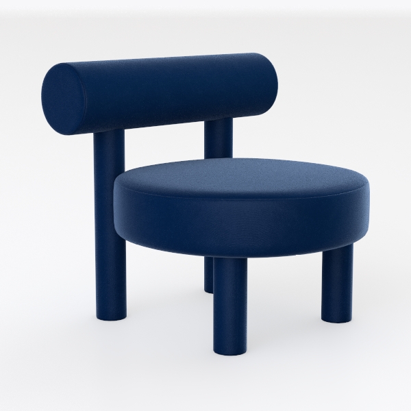 Introducing a captivating chair that draws inspiration from modernist design, blending playful curves with functionality. Wrapped in a rich navy upholstery, its texture invites touch, providing a luxurious feel that enhances any living space. The smooth surface and stylish round form create a visually striking presence, perfect for adding a pop of color to an otherwise neutral palette.