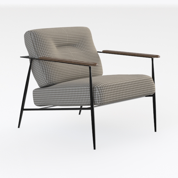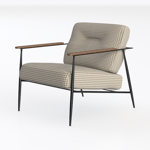 This armchair merges mid-century modern elegance with contemporary simplicity, rooted in the timeless appeal of houndstooth patterns reimagined for today’s spaces. Its design draws inspiration from the clean lines and balanced proportions of 1950s Scandinavian furniture, reinterpreting classic elements with a streamlined, uncluttered silhouette.
