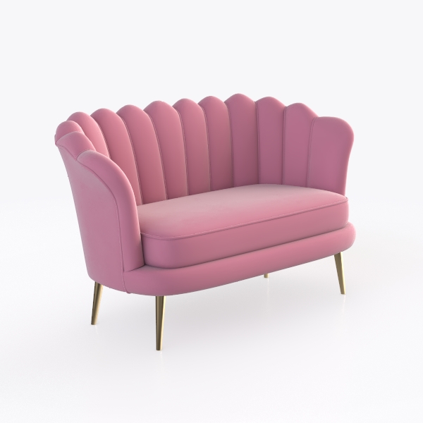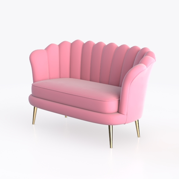 Embrace the playful elegance of this delightful loveseat, inspired by modern retro aesthetics. The soft pink upholstery exudes a sense of warmth and joy, while the scalloped backrest adds a whimsical touch that captivates the eye. The smooth texture invites you to sink in, providing comfort and coziness for both casual gatherings and intimate moments.