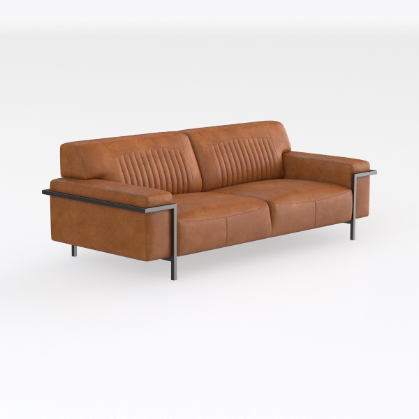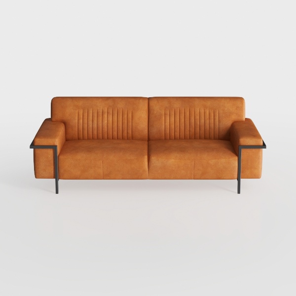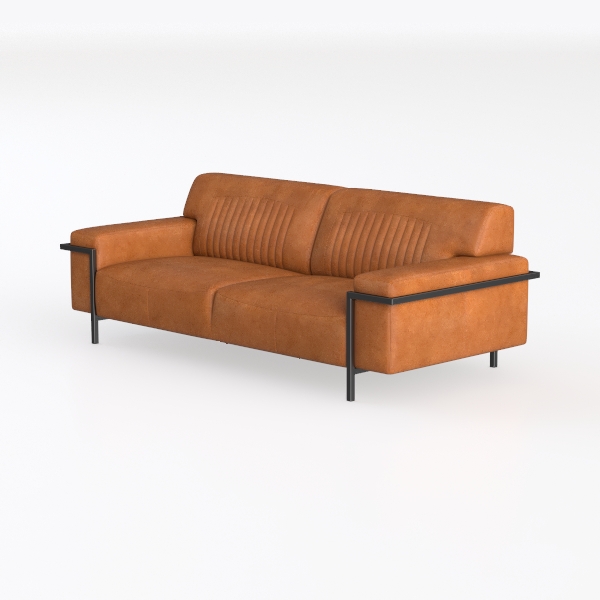 The sofa’s visual appeal lies in its balanced proportions: the curved backrest and wide, plump seat create a sense of comfort, while the angular, black metal legs—sleek and lightweight—provide a striking contrast to the organic leather, grounding the piece with modern edge.