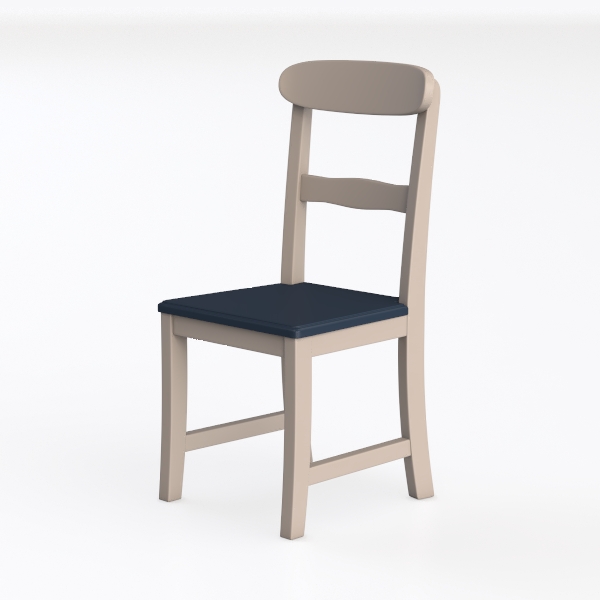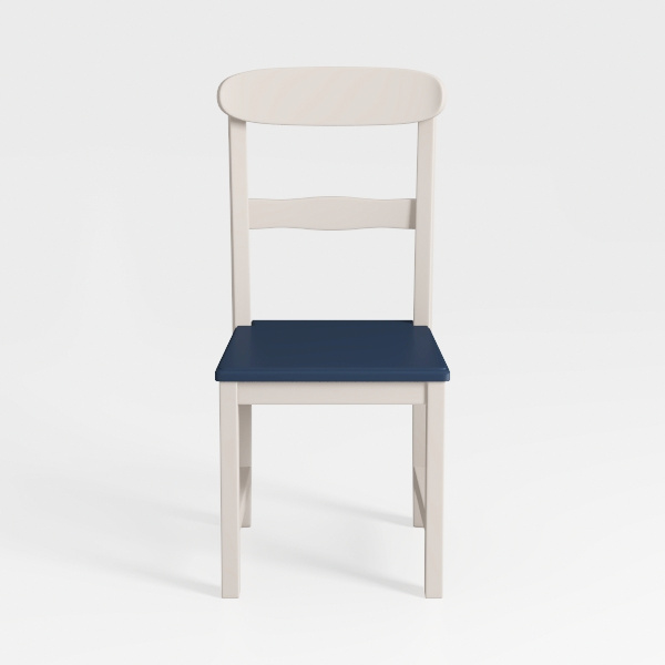 Visually, the light-toned wooden frame contrasts beautifully with the deep blue upholstered seat, creating a striking yet harmonious palette. The frame’s smooth, matte finish highlights the natural grain of the wood, adding subtle texture, while the upholstered seat feels soft and inviting, with a firm but comfortable density that supports the body. The gently curved backrest follows the natural curve of the spine, enhancing both aesthetics and comfort.
