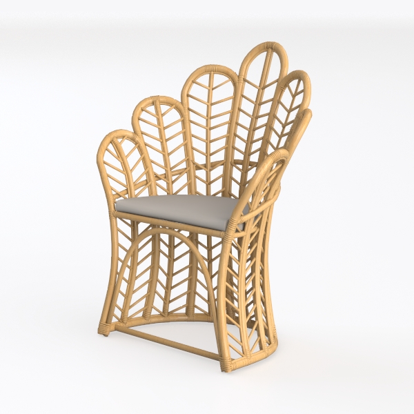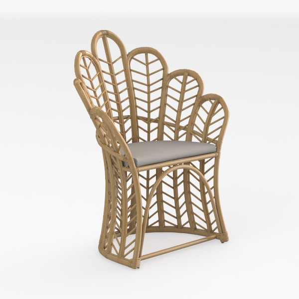 Inspired by the delicate, unfurling forms of natural feathers or leaf veins, this chair merges organic beauty with thoughtful design. Crafted from warm, honey-hued rattan, its frame weaves a pattern of soft curves and geometric interlacing—light, airy, and full of movement. The texture is inviting: the rattan fibers, slightly rough yet supple to the touch, create a tactile connection to nature, while the smooth, off-white upholstered seat adds a gentle contrast, offering immediate comfort.