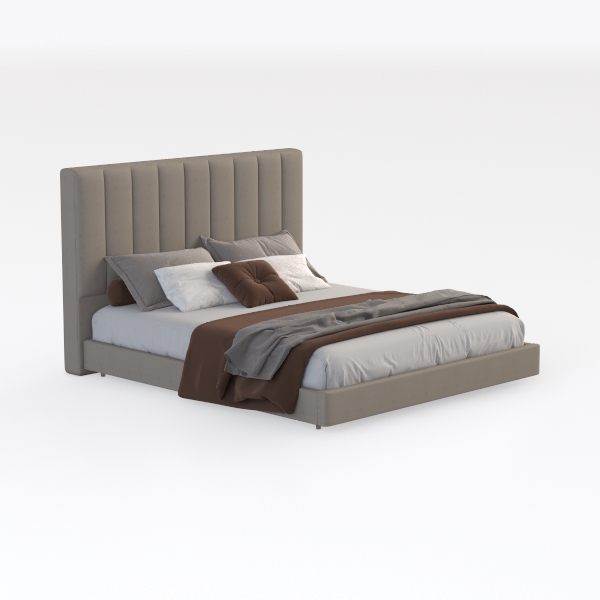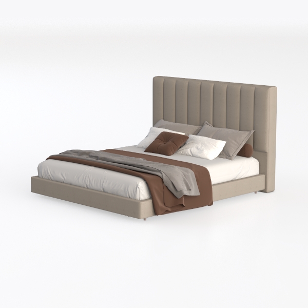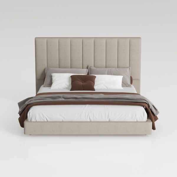 Inspired by minimalist Scandinavian design, this bed features a soft, textured linen headboard with gentle vertical lines, creating a calm, airy vibe. Its neutral beige hue blends seamlessly with warm woods and soft lighting, perfect for modern or Scandinavian bedrooms. The wide, padded headboard offers excellent back support, while the smooth linen and crisp white bedding ensure a cozy, restful night.