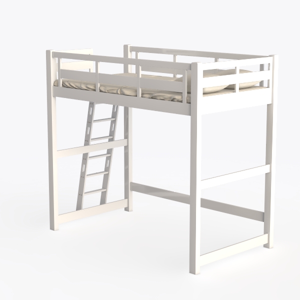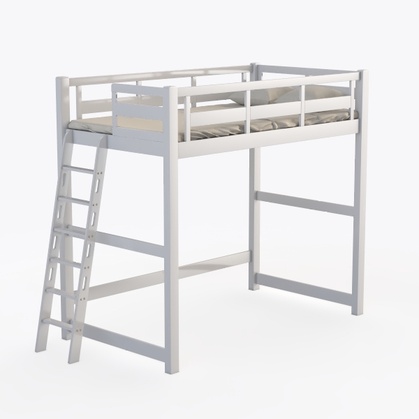 Camaflexi Panel Style Solid Wood High Loft Bed, Twin, Side Angled Ladder, White