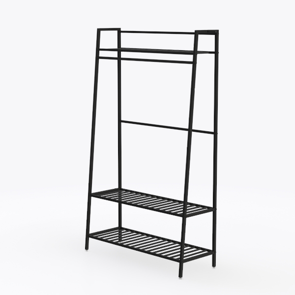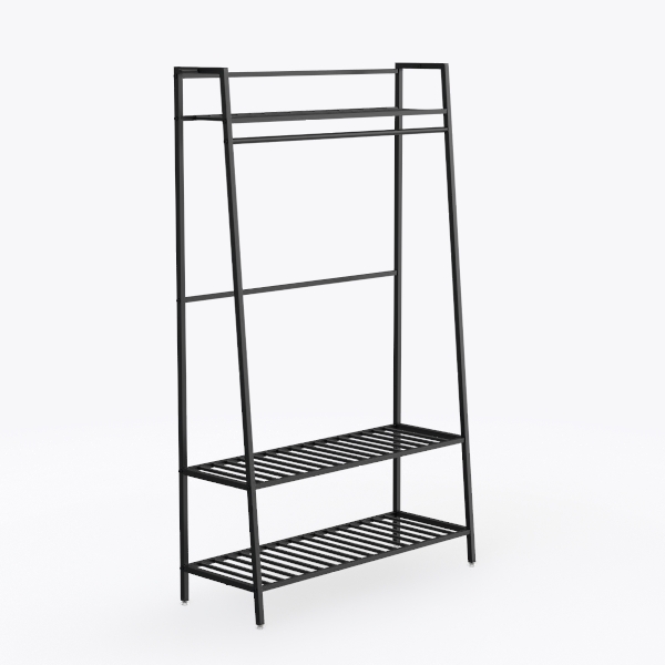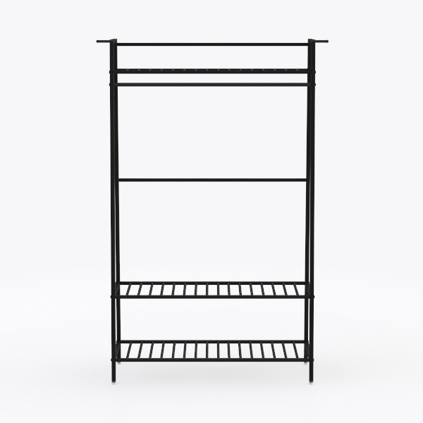Blending industrial minimalism with practicality, this sleek black metal rack draws inspiration from urban architecture, emphasizing clean lines and functional layering. Its matte black finish and slender, evenly spaced bars create a cool, understated presence, catching light subtly for a modern edge. Perfect for modern study rooms or minimalist living areas, it pairs beautifully with wooden shelves, marble accents, and potted greenery. The lower slatted shelves allow air circulation, while the sturdy frame supports books, decor, or daily essentials, balancing style and utility seamlessly.