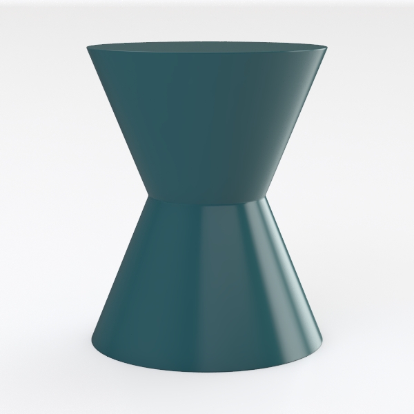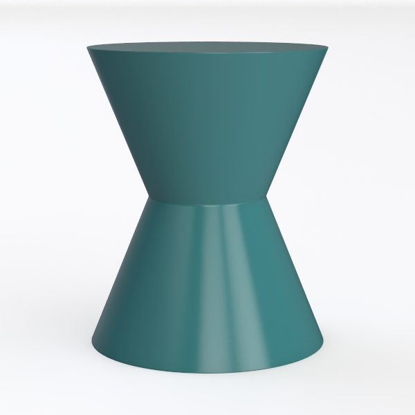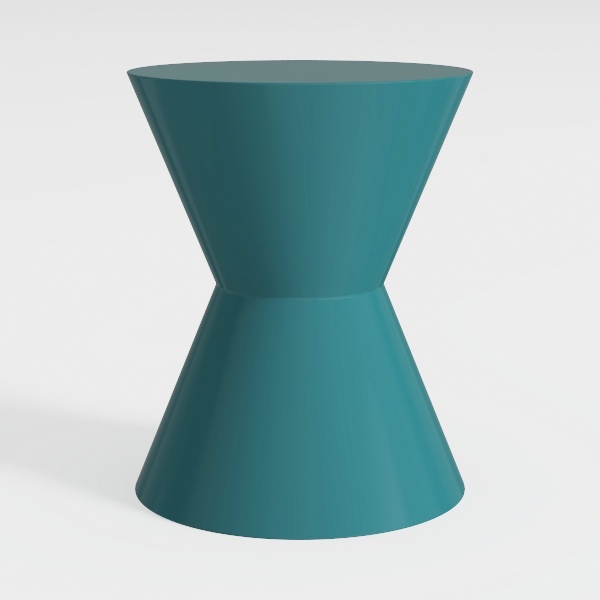 Inspired by organic hourglass forms, this teal side table features a sleek, matte surface with soft shadow play, cool to the touch. Its balanced silhouette merges modern minimalism and Scandinavian charm, ideal for living rooms with marble or wooden coffee tables, pairing well with metallic accents. Stable and lightweight, it holds lamps, books, or decor effortlessly.