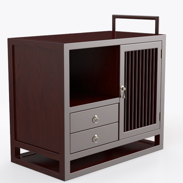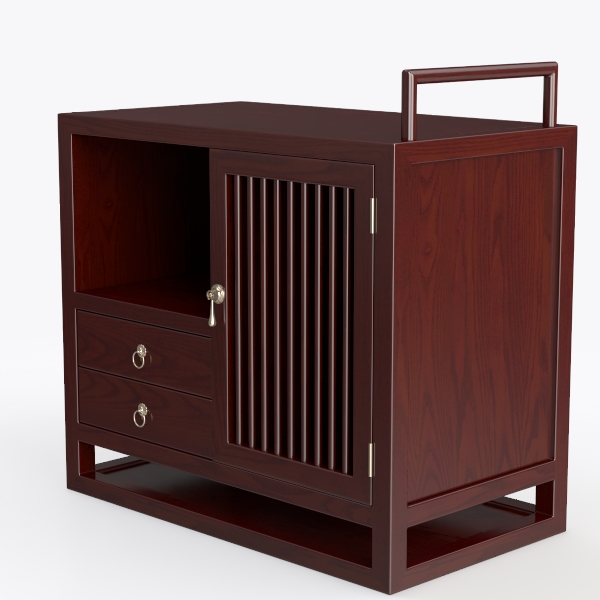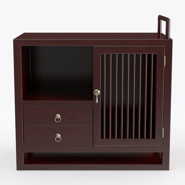 Crafted with traditional Chinese design principles, this piece blends warm, dark wood grain for a rich, tactile feel. The slatted door adds subtle transparency, balancing the solid frame. Ideal for a classic living room or study, pairing beautifully with ink art and greenery. Two drawers and an open shelf provide practical storage, merging functionality with timeless charm.