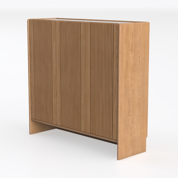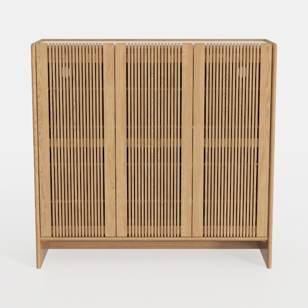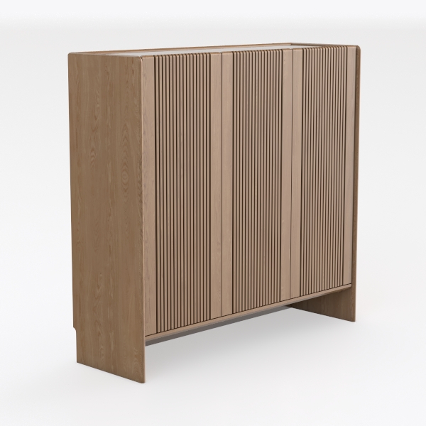 Inspired by natural textures and minimalist craftsmanship, this piece blends organic warmth with clean lines. Its light oak finish reveals smooth, grainy surfaces, while vertical slats create a subtle, airy rhythm that softens the space. Perfect for a serene living room or study, it pairs beautifully with linen sofas, potted succulents, and warm-toned rugs. Ample storage space behind the slatted doors keeps essentials organized, balancing aesthetics with practicality.