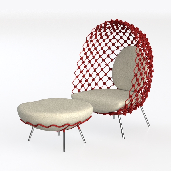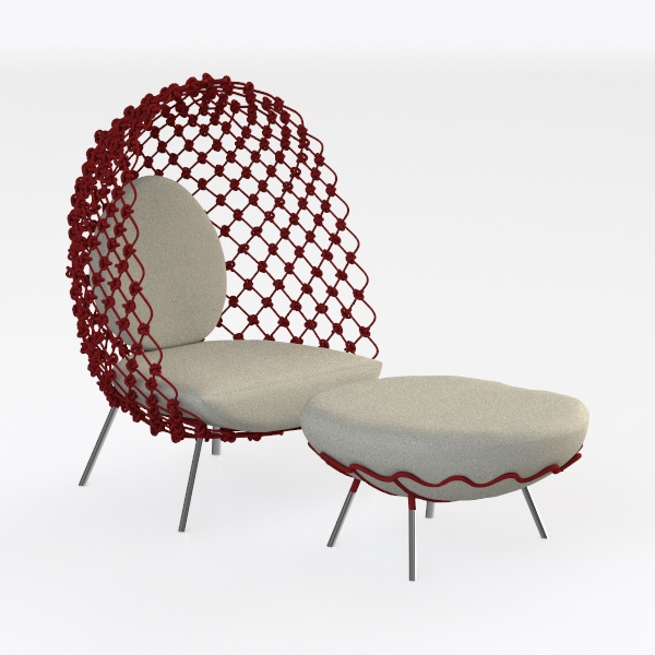 Inspired by organic weaves, this chair blends natural texture with modernity. The red woven structure feels airy and lightweight, while the soft white upholstery offers a cozy touch, creating striking visual contrast. Ideal for modern living rooms or reading corners, pairing beautifully with minimalist decor and warm lighting. Curved back and wide seat ensure excellent support for lasting comfort.