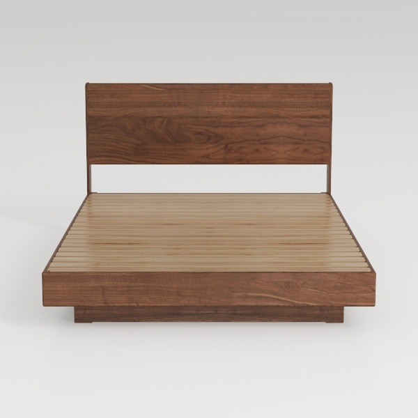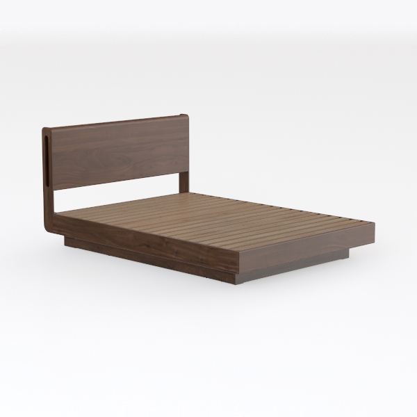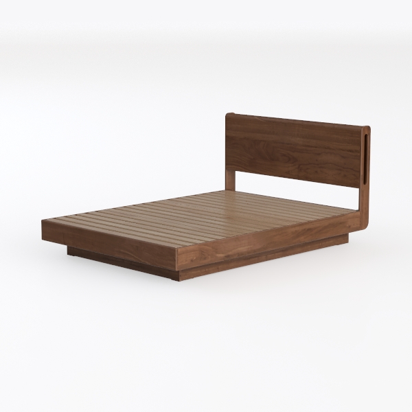 Inspired by natural wood grain patterns and minimalist design, this bed merges organic warmth with clean lines. Its rich, smooth walnut-like surface offers a tactile delight, while the light-toned slatted base adds visual airiness. Ideal for modern, cozy bedrooms, it pairs seamlessly with soft textiles and understated decor like marble nightstands. Sturdy construction and slatted platform ensure mattress support and breathability, enhancing sleep quality.