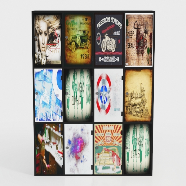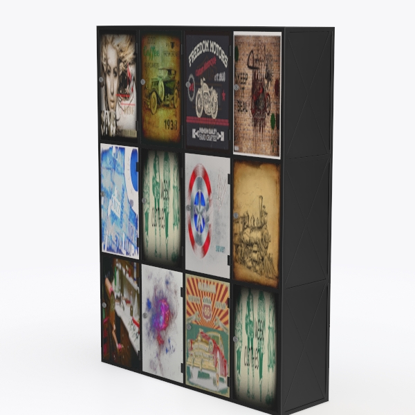 Inspired by curated vintage finds and artistic eclecticism, this multi-compartment wall rack blends diverse decor—retro posters, abstract prints, and textural designs. Its minimalist frame contrasts with vibrant visuals, creating a layered, narrative feel. Ideal for bohemian or industrial living spaces, it showcases personal treasures, merging functionality with artistic allure.